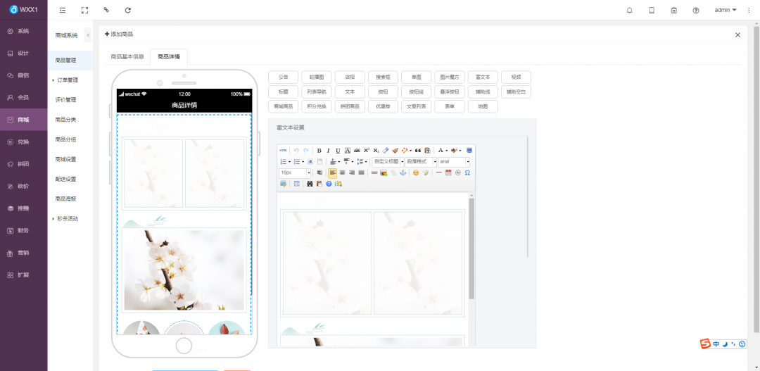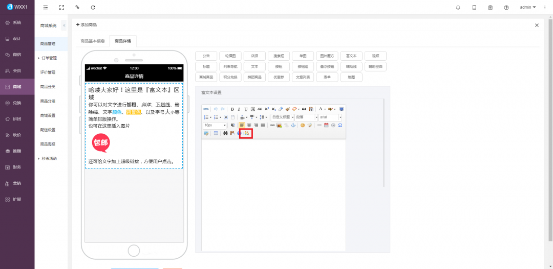 1、在平臺編輯圖文的界面,如:編輯商品詳情,點擊135按鈕